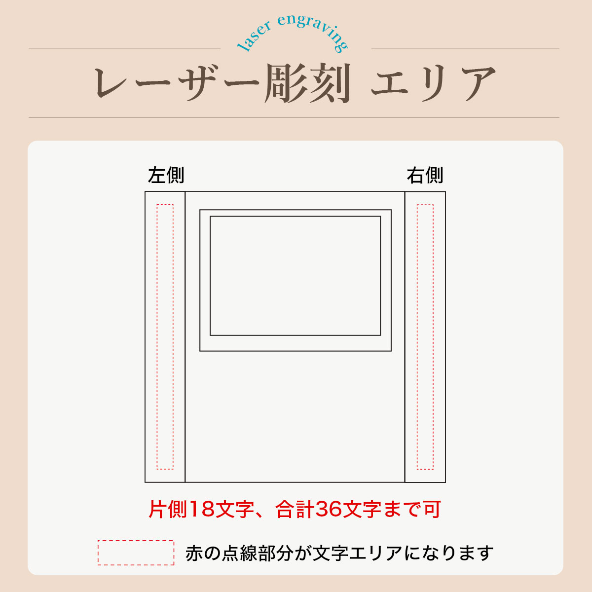 文字は時計の左右の木製部分に縦書きで彫刻ができます。片側に18文字ずつ、両側で合計36文字まで入ります。